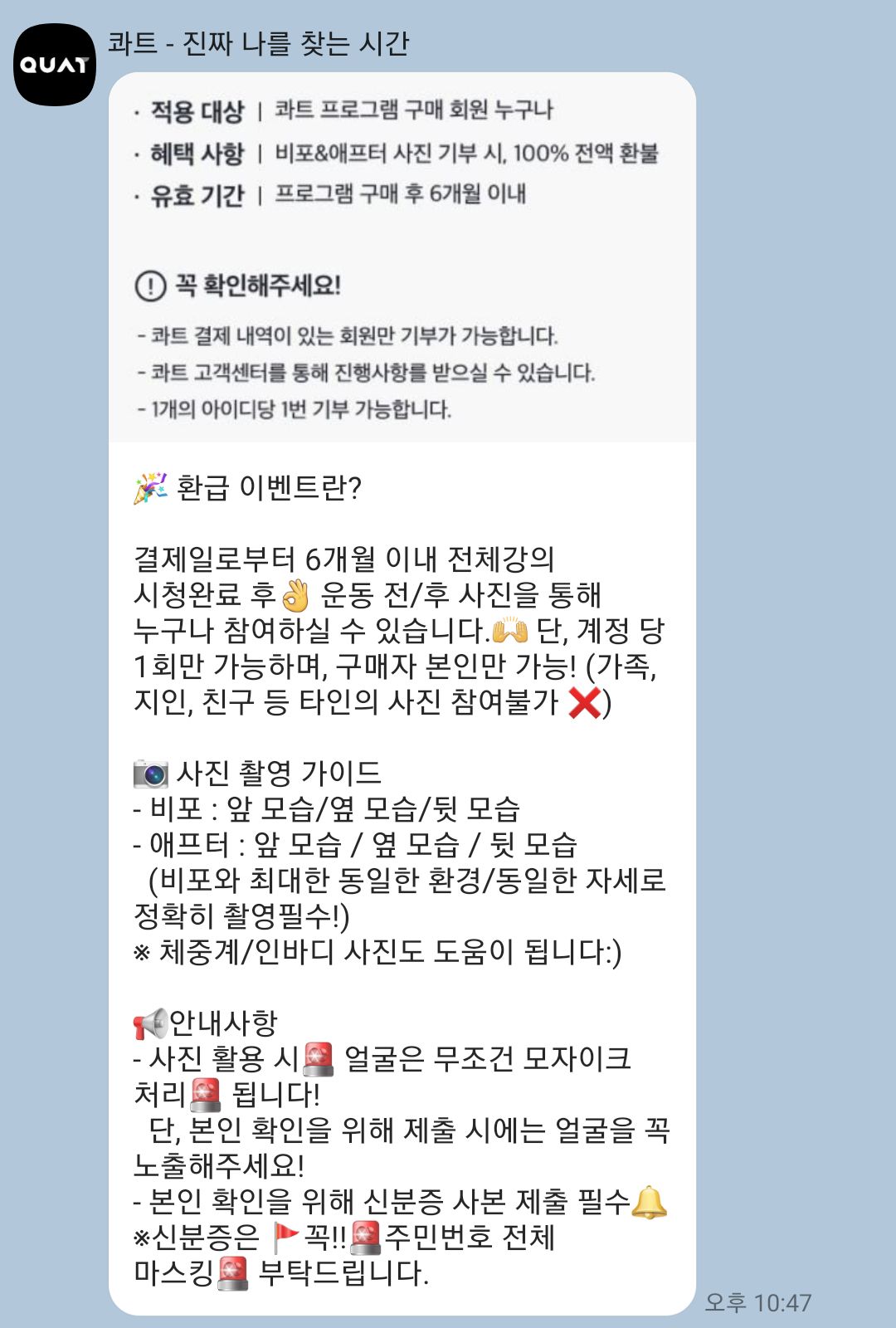 환급을 목표로 콰트 하시는 분들은 비포애프터 얼굴사진으로 꼭 찍어두세요